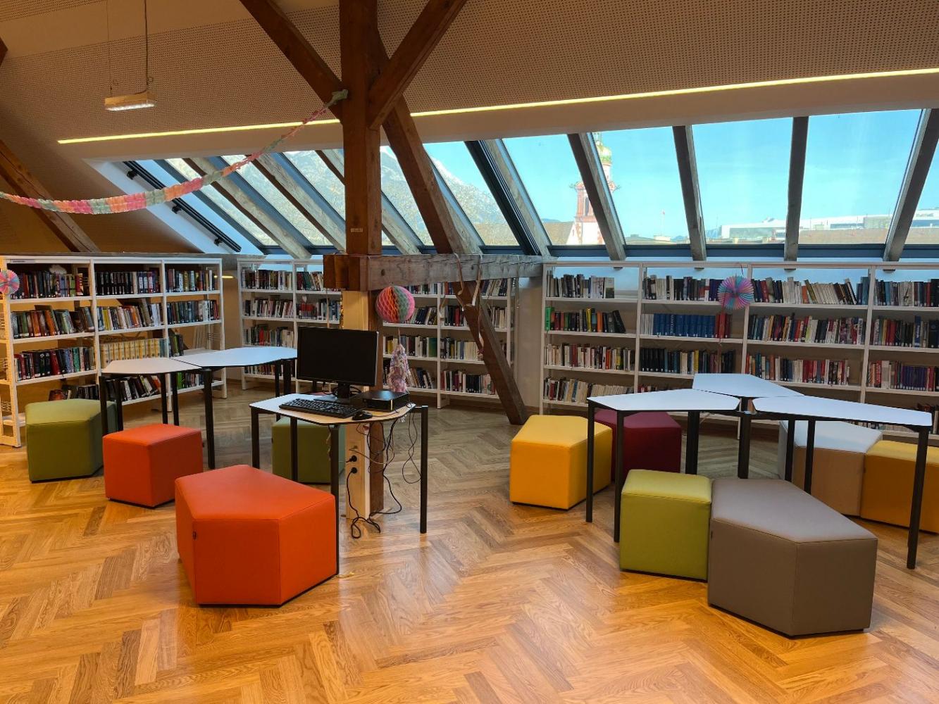 Unsere Schulbibliothek öffnet nun endlich ihre Pforten! Hoch oben im 3. Stock lädt der helle, freundliche, multifunktionale Raum zum Lesen, Lernen, Arbeiten und Entspannen ein. Und das in einer tollen Atmosphäre…