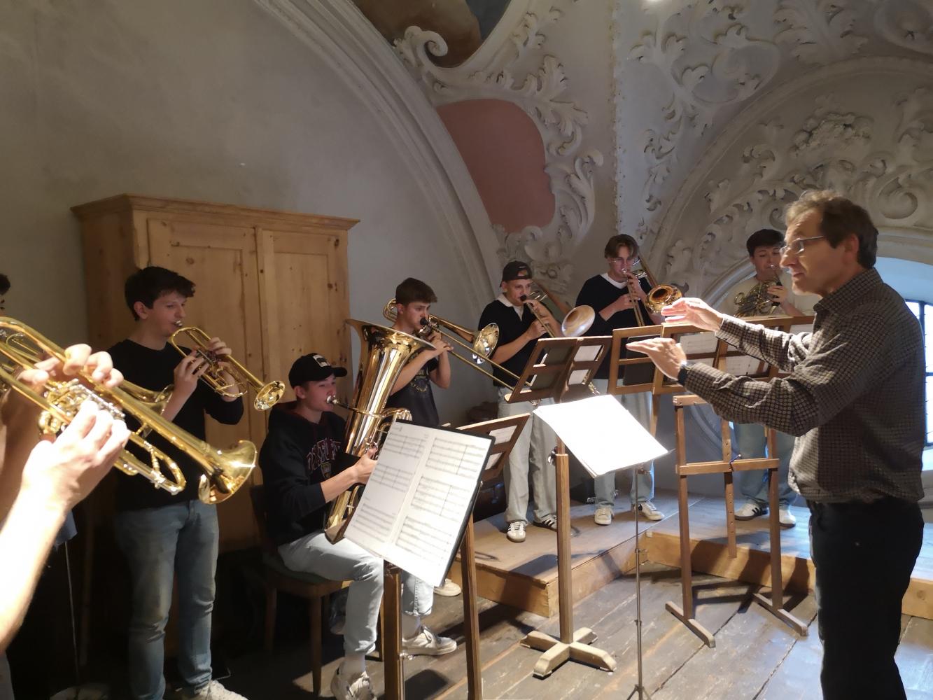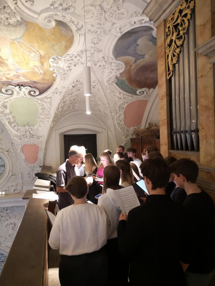 Die Eröffnungsmesse wurde von P. Peter Rinderer zelebriert und mit den Religionslehrer/innen vorbereitet. Musikalisch mitgestaltet von den Bläsern und dem Kammerchor des Musikgymnasiums unter der Leitung von Kurt Arnold und Sigi Portugaller. Die Orgel spielte Joachim Mayer. Am Ende der Hl. Messe teilte uns Direktorin Inge Bulckens ihre Gedanken zum Beginn des Schuljahres mit.