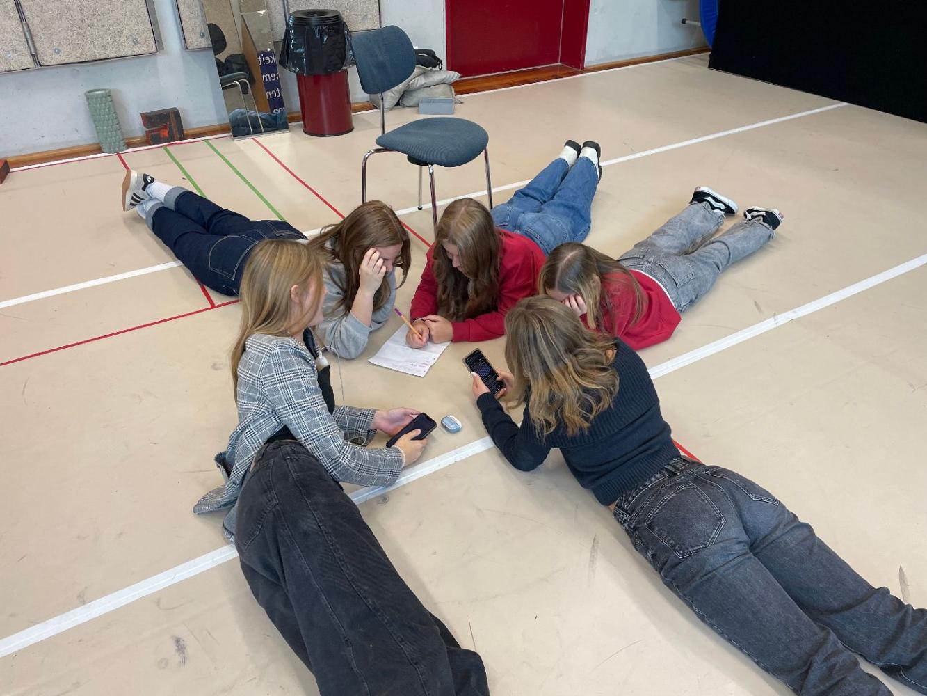 Durch weitere Recherche, die wir in mehreren Gruppen im Tanzsaal betrieben haben, setzten wir uns noch mehr mit dem Stück und seinen Verfilmungen aus den Jahren 1942 (Film von Ernst Lubitsch) und 1983 (Film von Mel Brooks) auseinander.